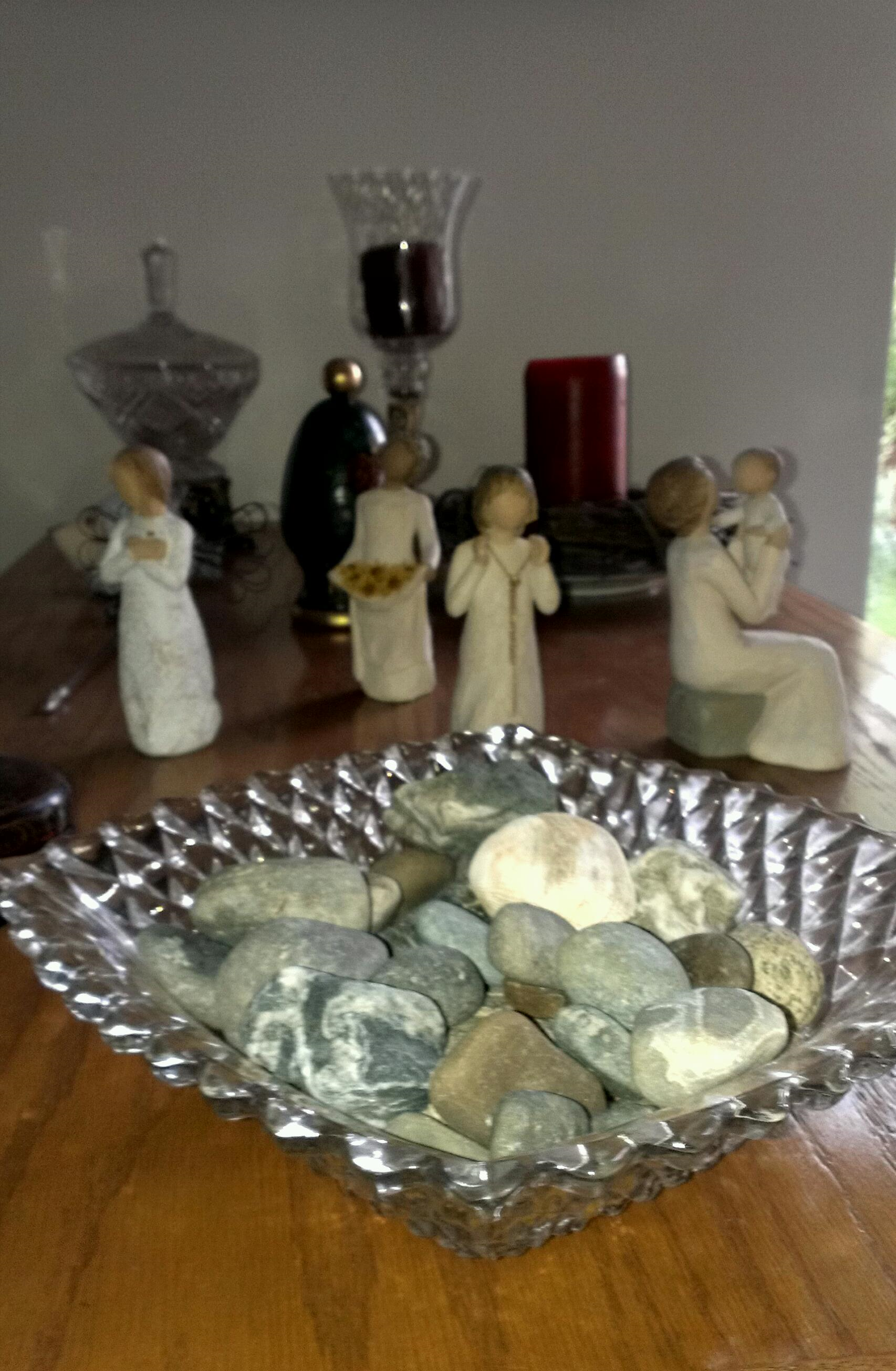 The rocks in my bowl are there because it makes me remember Allison, almost-five Asher, and husband, Chris, who were here this summer and soothed my ruffled feathers during my mother’s move to the new retirement community.