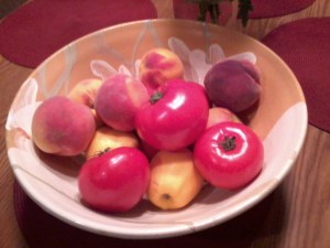 For Sept. 2, here’s a favorite picture of mine, of fresh tomatoes and peaches from our woderful Green Bluff growers’ area north of where we live, only 12 minutes away. It makes a wonderful outing to drive up to Green Bluff and bring home tomatoes, peaches, blueberries, apples and more, plus you-pick strawberries. They also have some incredible huckleberry fudge and huge ice cream cones. I love where we live.