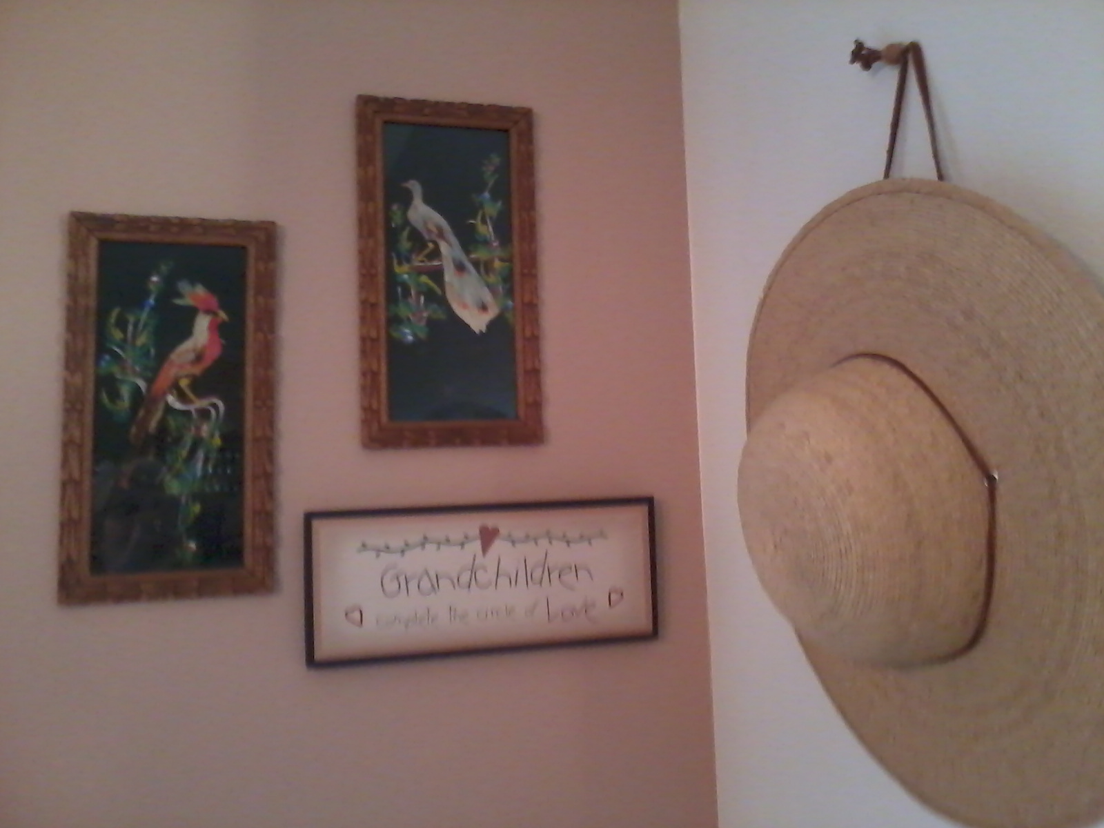 I took her advice, hung the hat and later that day the new plaque, and realized that the corner now seemed complete, since the bird pictures were from my own grandmother, Ruth Peek Ellis, born in Louvale, Georgia, in 1898.