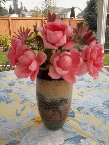 Usually, my struggle lasts only seconds as I snip one flower, then more, then all, and before you know it, I have a lovely bouquet. Somehow I tell myself that if I take a picture I get to keep the flowers with me until the next season. And I did that very thing this morning with the last of the summer roses.