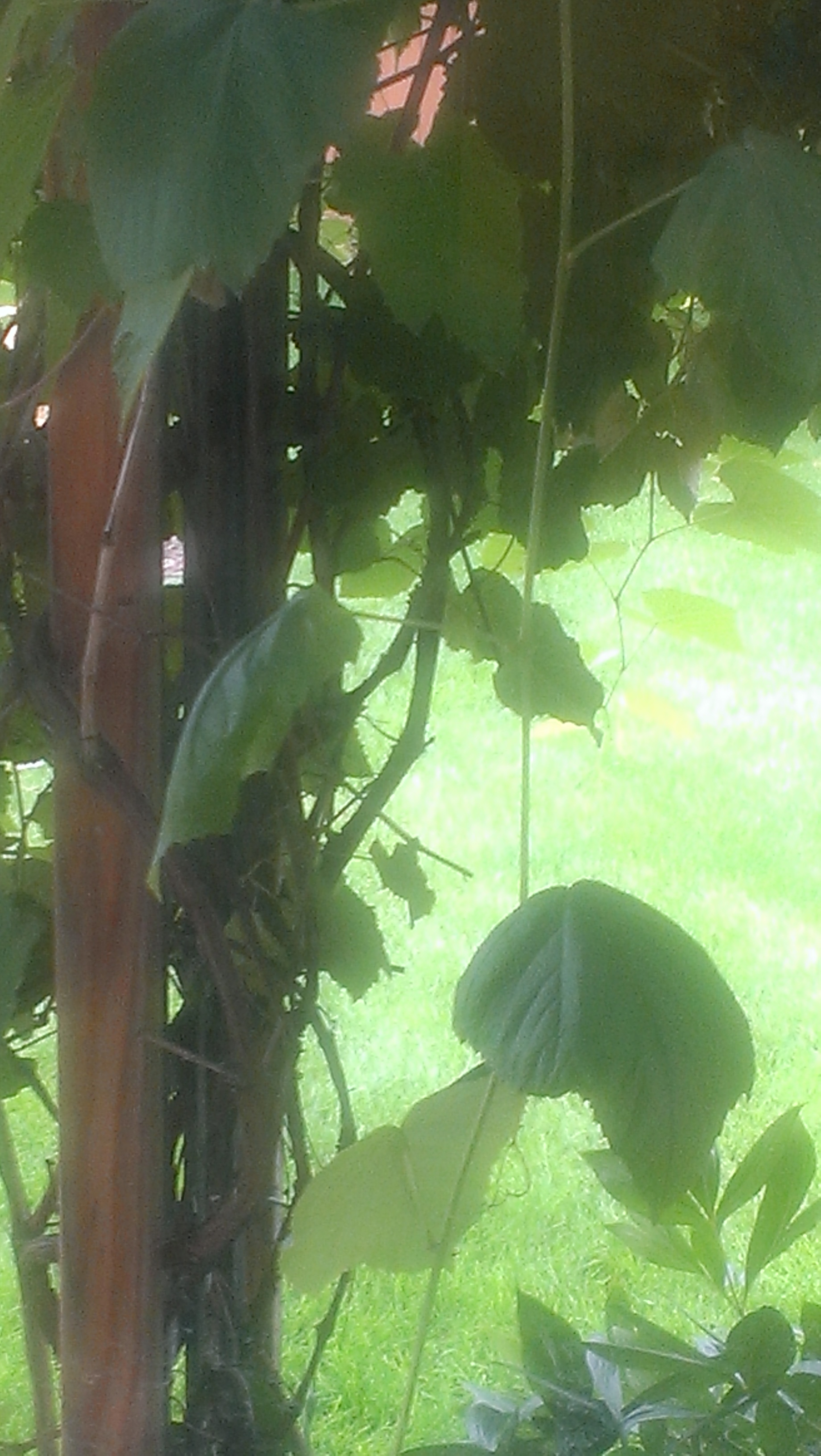 Grapevine, Sept 2013It rained today, after thunder and lightening put me to sleep last night. I love snuggling under the covers, hiding my head, when the thunder sounds like it’s just hit the house, when I know it hasn’t, of course. Went right to sleep. Woke up with renewed energy and decided to clean out a 4-drawer file cabinet, pared down to a 2-drawer file cabinet. That deed is done, thank to an amazing recycling bin we have in the garage that holds the many trips of papers, file folders and old notebooks carted outside, not to mention a table full of empty notebooks for a trip to Good Will tomorrow.