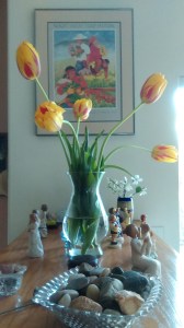 Even though I no longer work, and rarely volunteer for anything, life does not disappoint. There’s my African Violet on the kitchen window sill for daily inspection, usually a Good Morning Hello when I fix that first cup of coffee. There are three other plants to water, plus the mum on the back deck, two on the front porch and my mother’s rose bush along the front walk. While I have the watering can out I fill up the flower pot with the fountain in it that my friend Gail sent for my birthday. I can’t forget the raspberries to pick, even in the Fall, and more green peppers in the garden hubby planted. And of course a daily email to friend, Gail. What would we do without our dearest friends, no matter where we live.